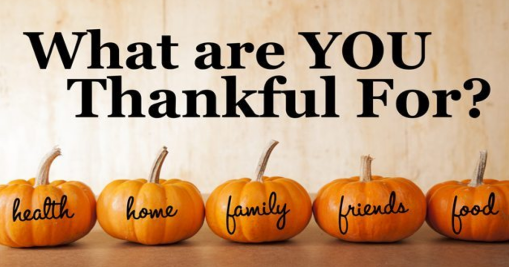 What are you thankful for? Share your comments below or you can send your comments directly to me.